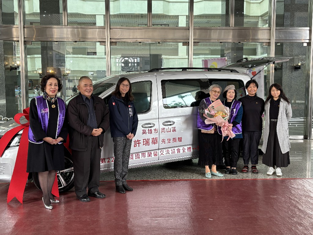 ↑圖說:許陳翠娥女士及高雄市舒緹國際蘭馨交流協會捐贈福祉車(圖片來源:高雄市社會局提供)