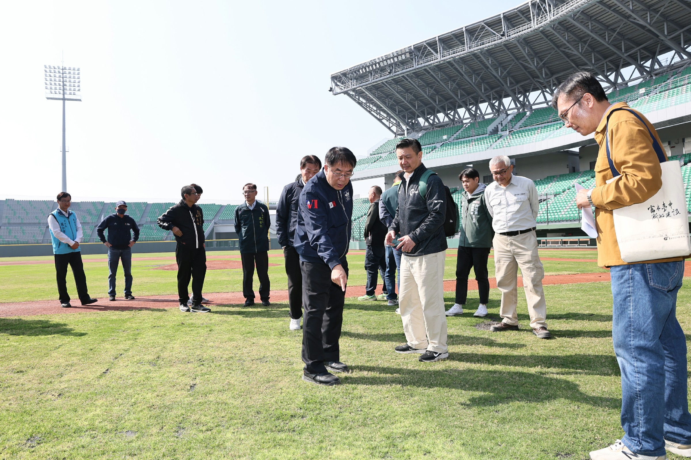 ↑圖說:黃偉哲對於球場的設施與工程進度表示肯定(圖片來源:臺南市工務局提供)