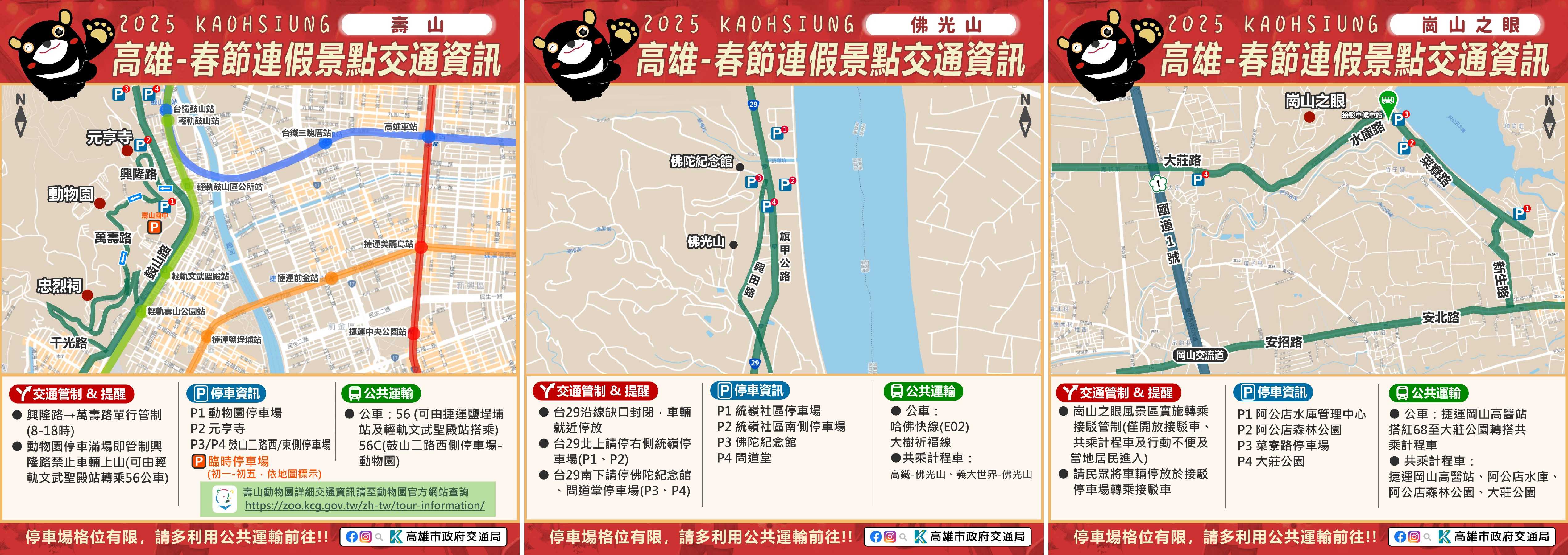 ↑圖說:壽山動物園、佛光山、崗山之眼春節連假交通資訊(圖片來源:高雄市交通局提供)