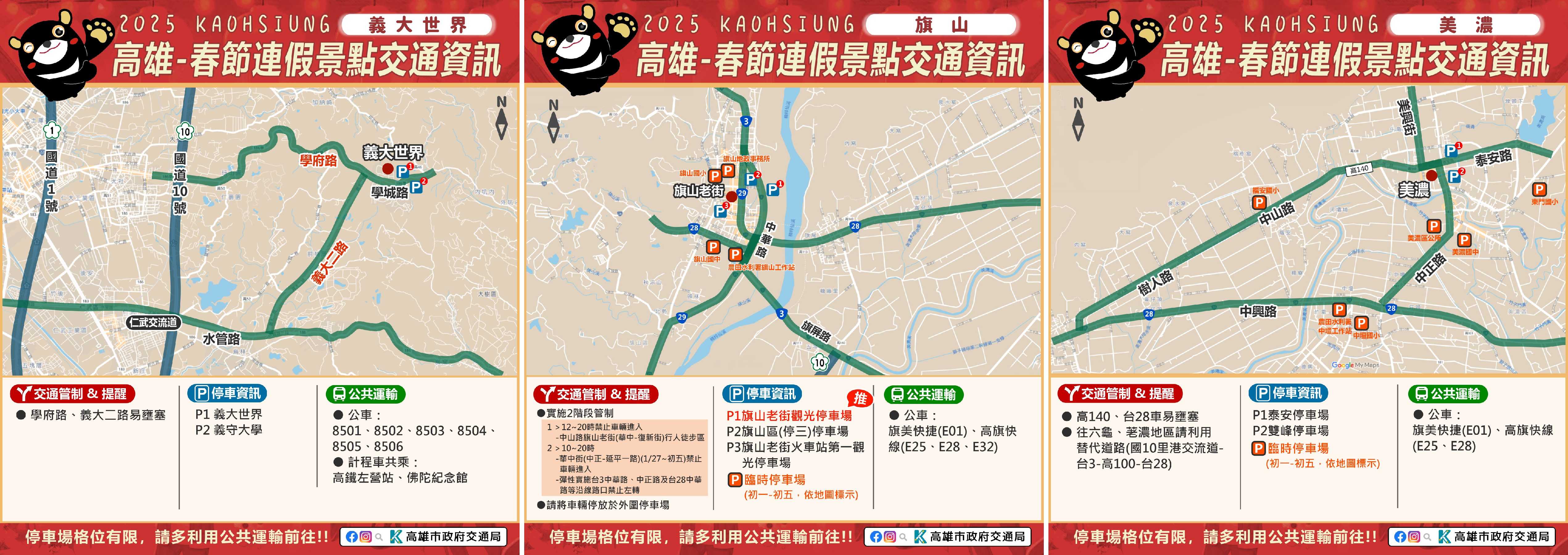 ↑圖說:義大世界、旗山、美濃春節連假交通資訊(圖片來源:高雄市交通局提供)