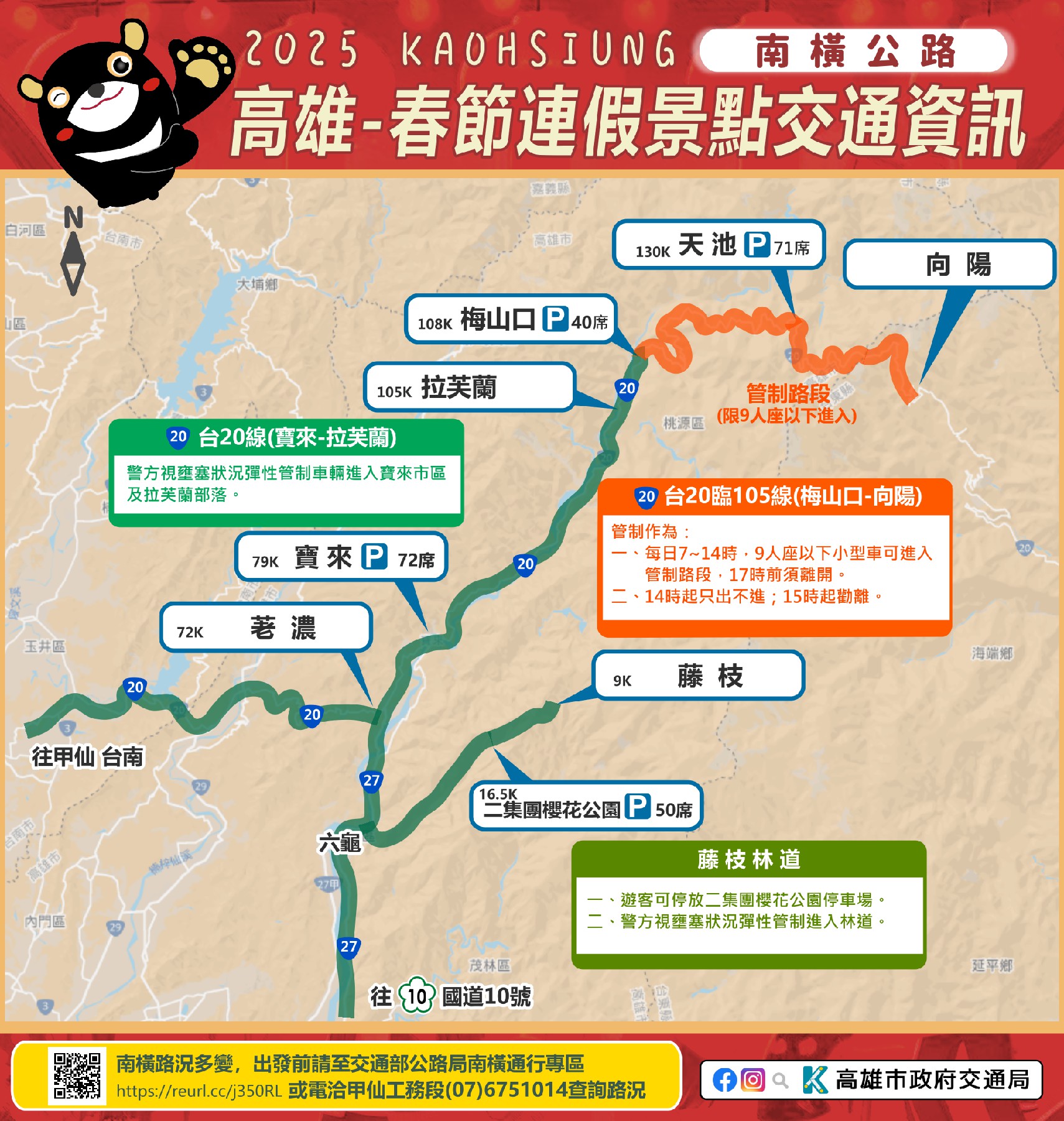 ↑圖說:南橫公路春節連假交通資訊(圖片來源:高雄市交通局提供)