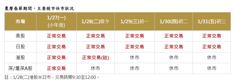 永豐金證券指出,春節期間正值美股財報季,投資人新春假期可以關注在美國經濟持續強勁情況下,公司對未來展望是否仍然樂觀,留意市場波動,若美股出現下修,可趁機觀察抗跌標的尋找優質股,或以存股方式進行布局,指數型ETF如SPY以及QQQ都是觀察焦點。