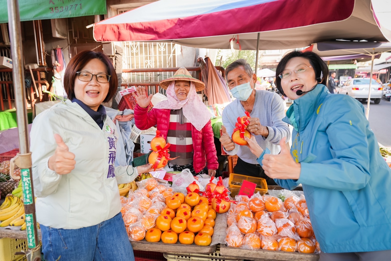 陪同林岱樺與黃飛鳳向民眾及攤商致意的,有大社區農會常務理事李子文、神農里前里長葉東火,現場攤商也致贈代林岱樺表好彩頭的白蘿蔔,感謝她為守護高雄,連續多日在基層掃街宣講。