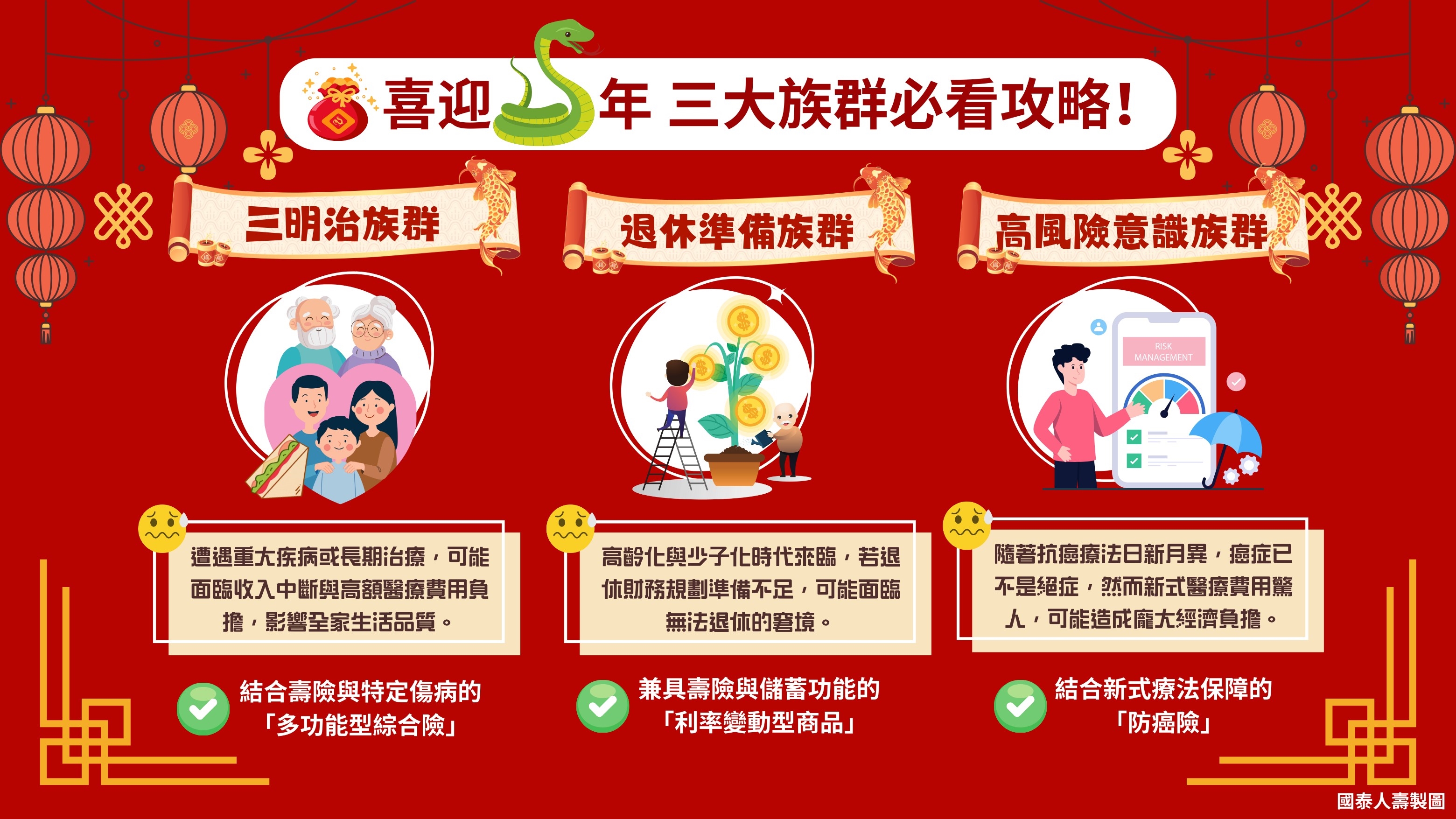 迎接新年,別忘了保單也需要重新檢視一番,國泰人壽提出3大族群的保單檢視攻略,包括「上有老、下有小」的三明治族群,以及退休族群、高風險意識族群,一起來參考。