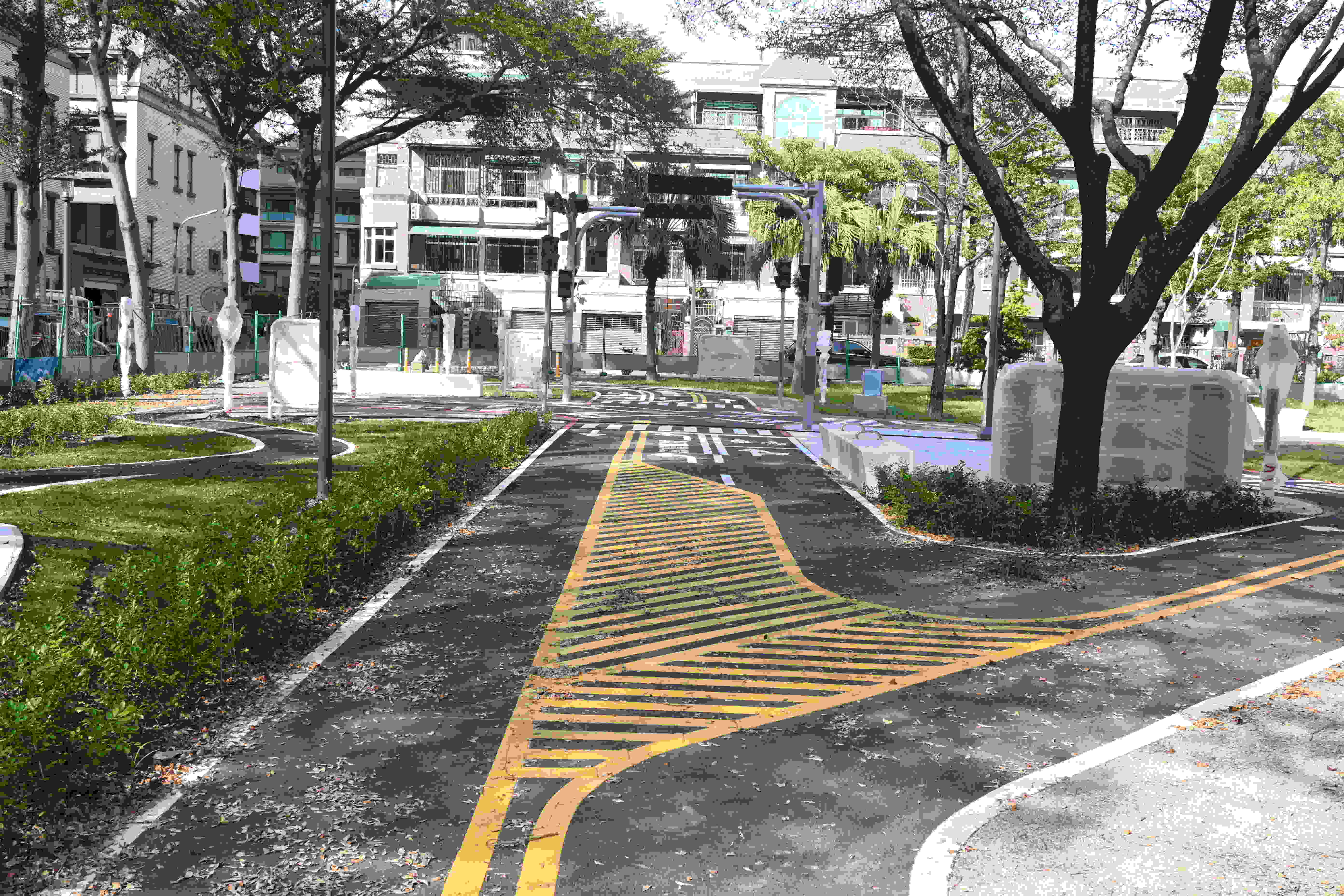 ↑圖說:光賢交通公園運用等比例縮小的道路設計,結合交通標線、標誌、號誌及遊憩空間。(圖片來源:台南市交通局提供)