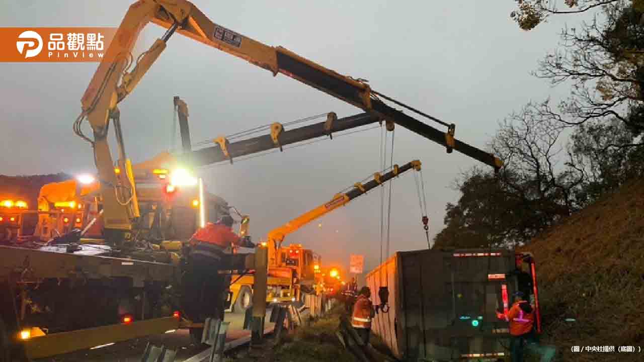 現場交通一度大受影響,內外車道均被占用,造成車流回堵長達4公里。高速公路局中區養護工程分局立即成立緊急應變小組,調派多輛拖吊車前往處理。經過約2小時搶修,於上午7時33分排除事故,恢復正常通行。