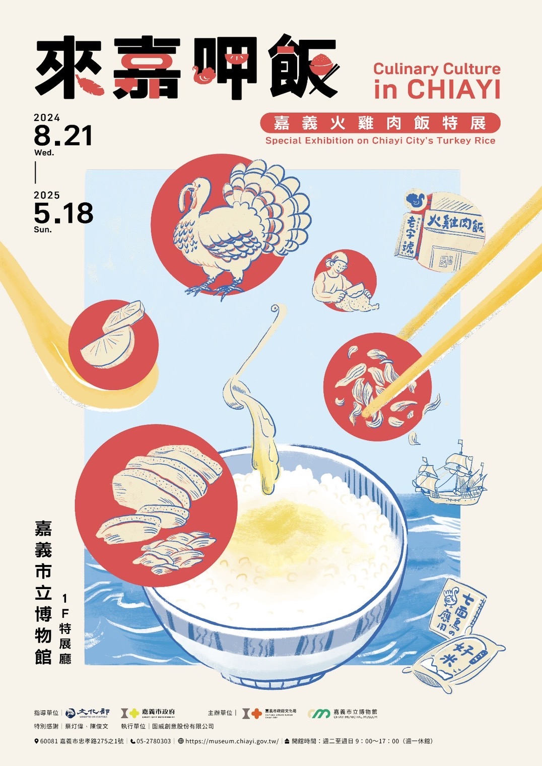 《來嘉呷飯——嘉義火雞肉飯特展》展期延長至5月18日(日),千萬別錯過這場結合美食與文化的精彩體驗!更多展覽資訊,請至嘉義市立博物館官網(https://museum.chiayi.gov.tw)查詢。