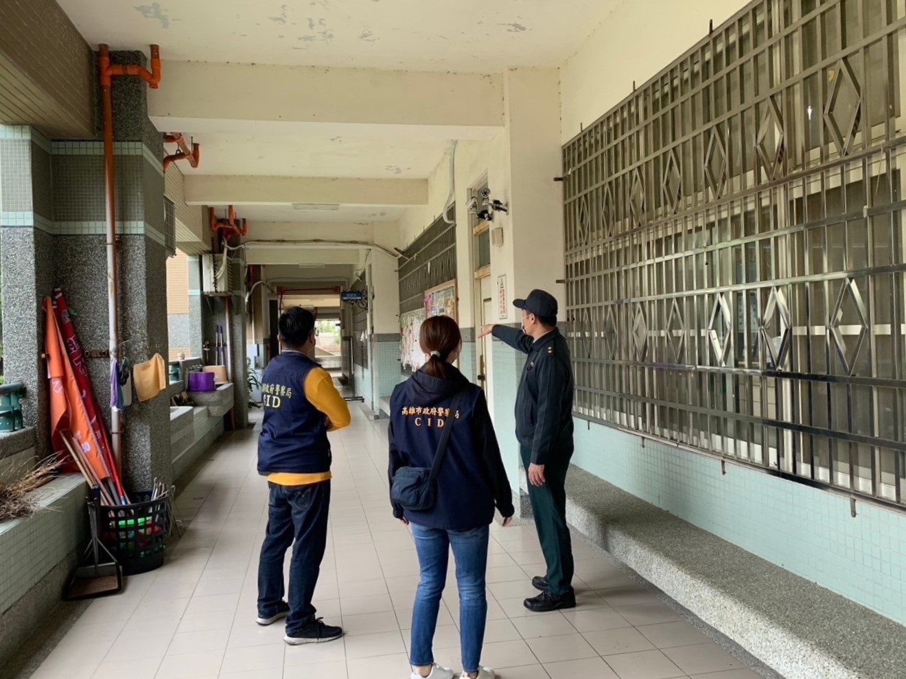 ↑圖說:為全面提升校園安全防護措施,偕同各學校針對校園周邊治安死角,檢視確認各通學路線沿線交通照明及監視錄影設備保持堪用。(圖片來源:高雄市警局少年隊提供)