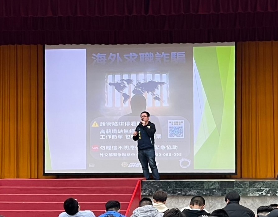 高雄市少年隊隊長陳仁正指出,許多年輕學子因缺乏警覺,可能成為兒少性剝削的被害者或加害者,甚至遭詐騙集團利用為車手,甚至被騙至海外遭非法拘禁。他提醒學生,面對來路不明的高薪工作機會,應提高警覺,若對方以「無經驗可、高薪、包吃住、包機票」等話術吸引求職者,極可能是詐騙陷阱,遇有疑慮可撥打110報案或165反詐騙諮詢專線求助。