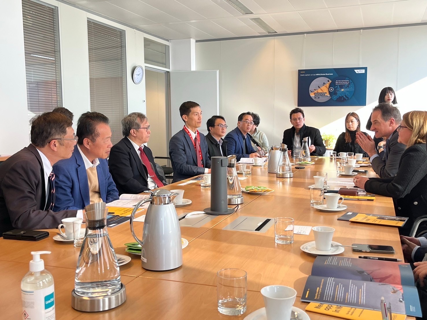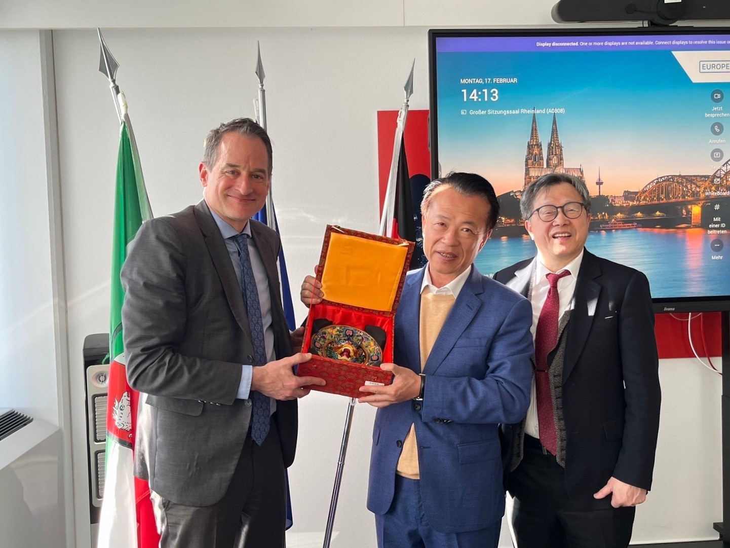 嘉義縣長翁章梁17日率團拜訪德國「北威州商務署(NRW Global Business)」,與該州官方招商機構交流無人機產業發展,尋求台德合作契機。此行由台灣駐德大使謝志偉、杜塞道夫台灣貿易中心主任廖俊生、亞創無人機創新園區廠商協進會理事長羅正方及虎尾科技大學自動化工程系教授沈金鐘等人陪同,深入了解北威州的投資招商模式,並探討雙方產業鏈結的可能性。