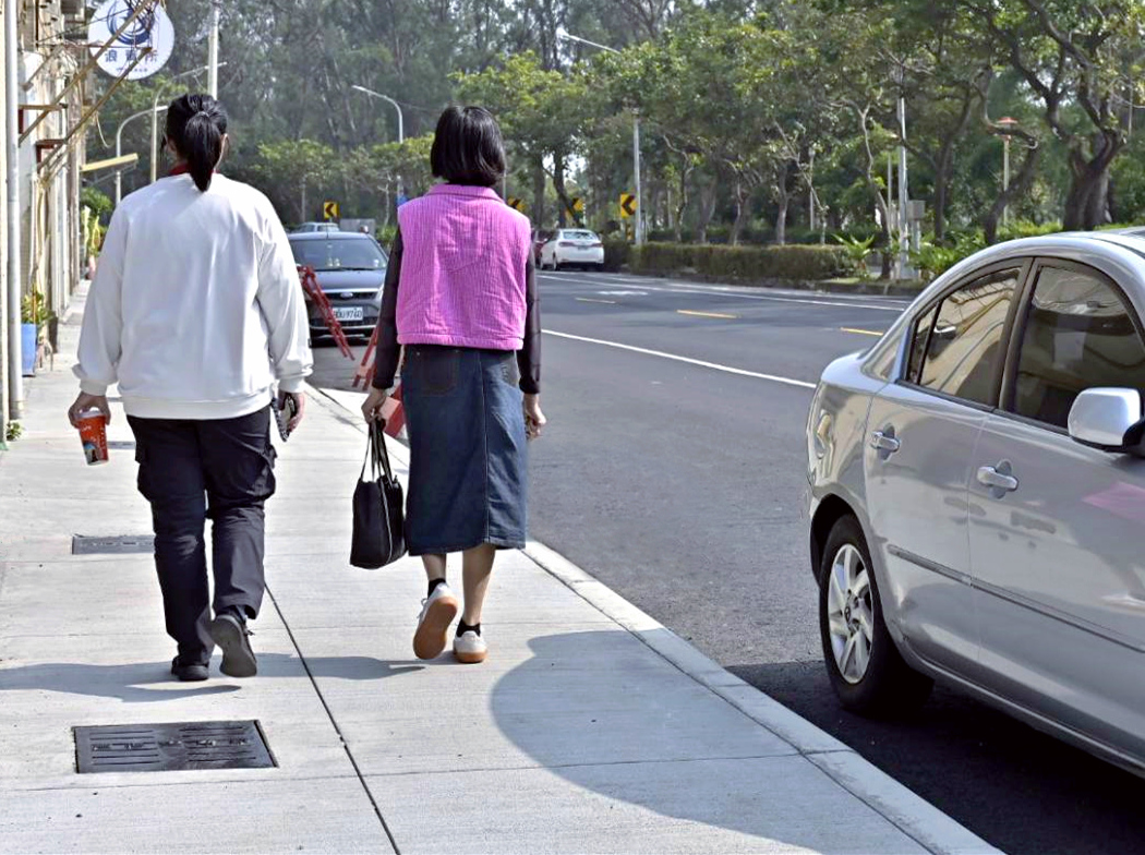 ↑圖說:旗津三路為旗津區居民往來主要幹道,改善工程將人行道整新為平順、耐久鋪面,同時改善無障礙斜坡設計,提供安心通暢的行走空間!(圖片來源:高雄市工務局提供)