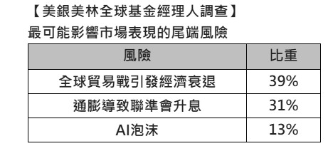 調查顯示,全球貿易戰引發經濟衰退,再度成為經理人最擔憂的三大尾端風險之首,通膨導致聯準會升息居次。然而,若全面貿易戰開打,則預計黃金的表現最佳,美元居次。