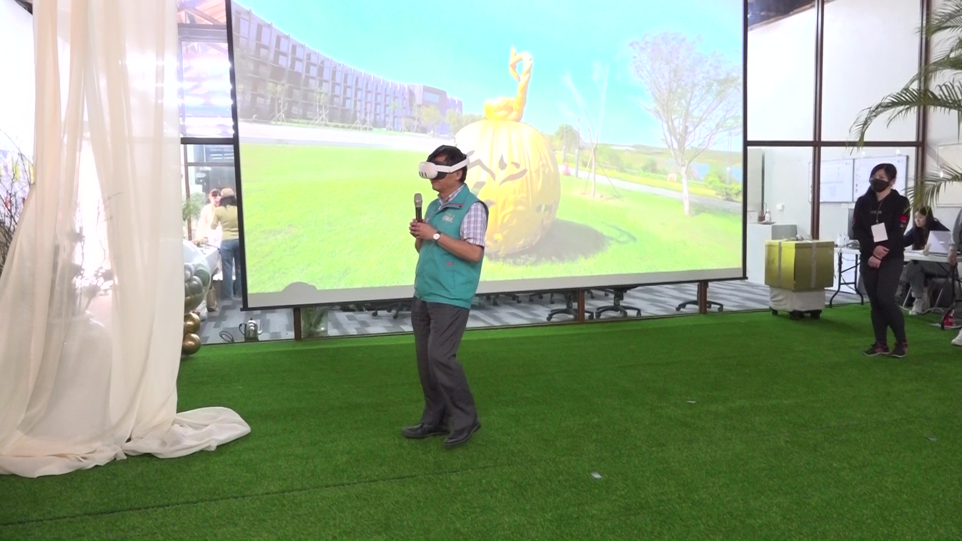 ↑圖說:嘉義縣副縣長劉培東體驗戲分茶XR。(圖片來源:嘉義縣文觀局提供)