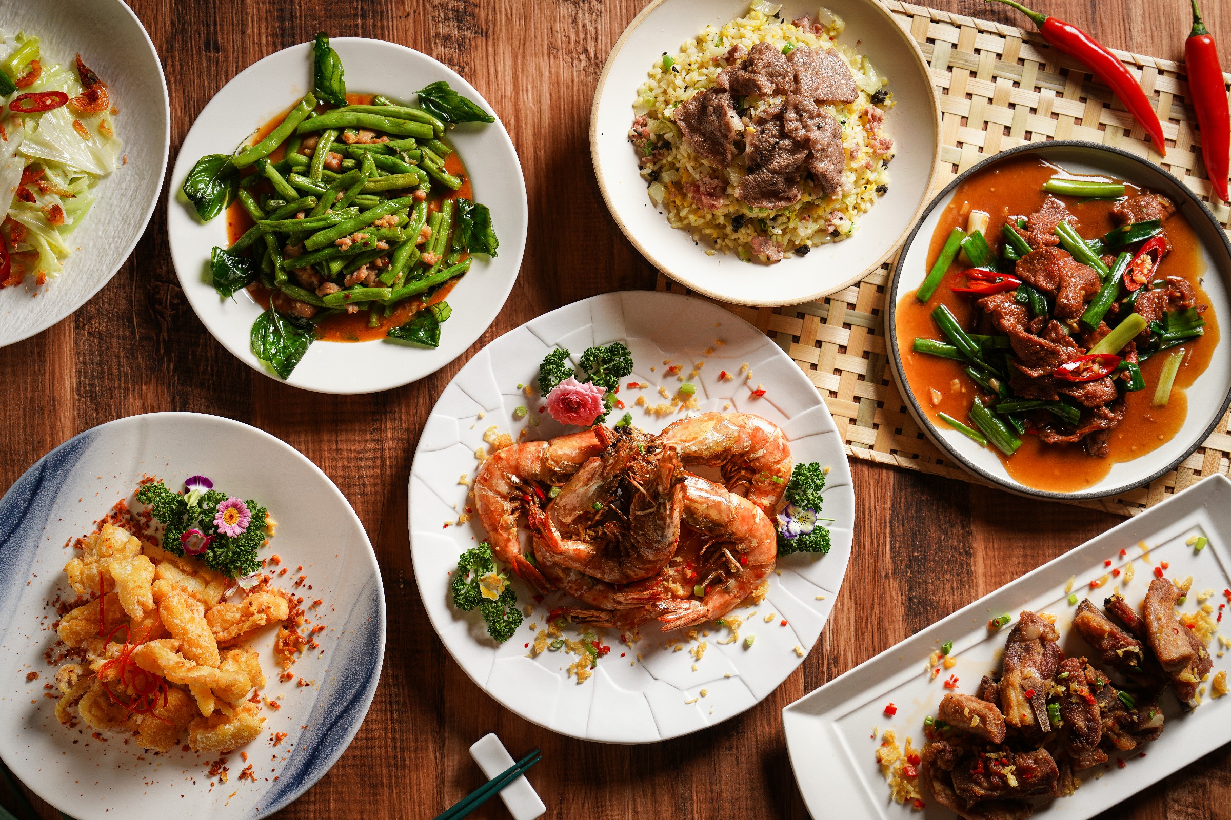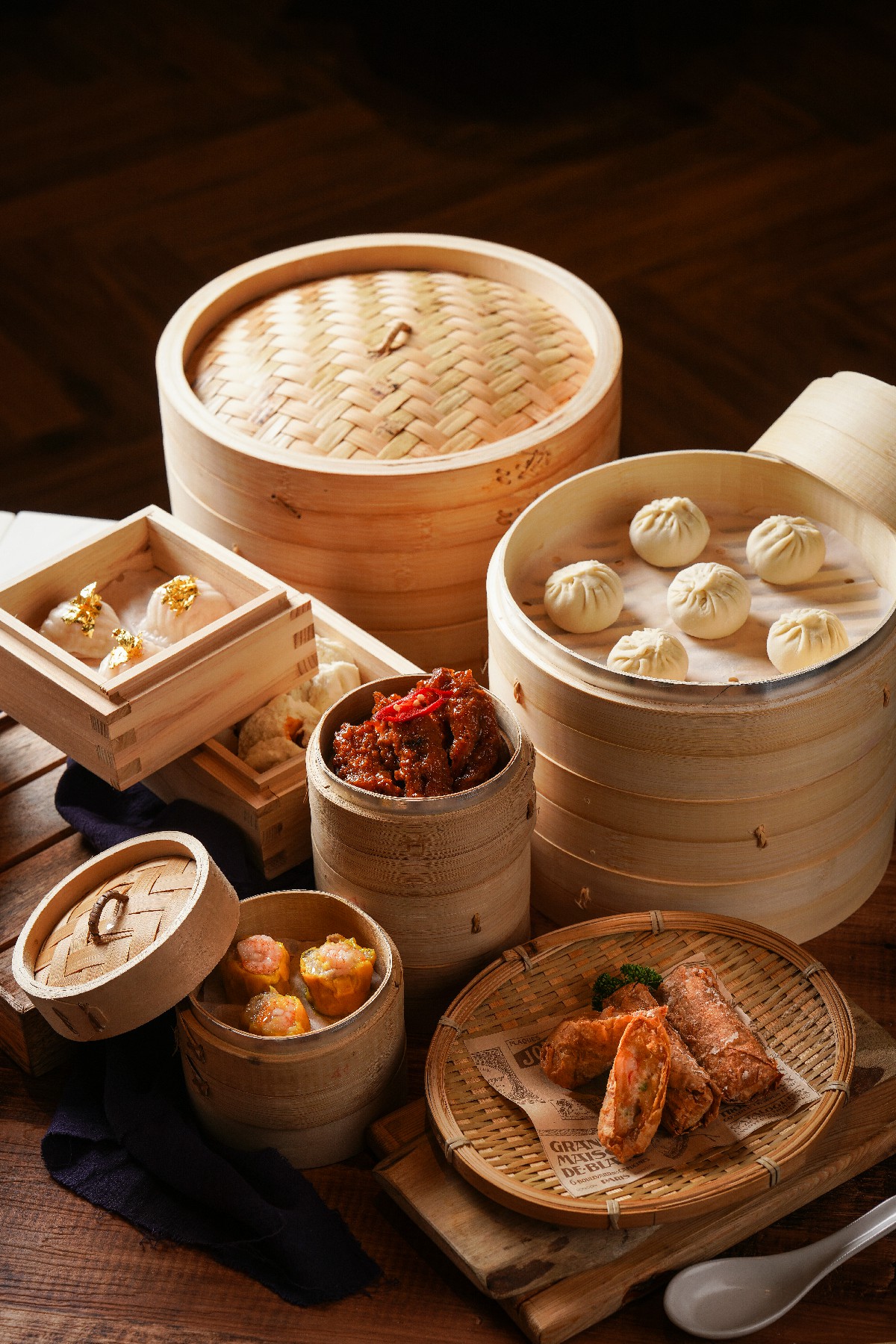 來自港澳的雙主廚操刀將地道粵菜精髓帶到台灣。主廚梁聖宇自14歲便踏入廚藝界,擁有近40年經驗,專精烤鴨、粵菜及潮州料理。他將傳統烹飪技法與創新手法結合,堅持以最用心的態度呈現每道佳餚。另一位主廚傅國柱則擁有30多年港式點心烹飪經驗,自幼熱愛港點,師承香港名廚,致力於將澳門傳統風味帶入台灣。