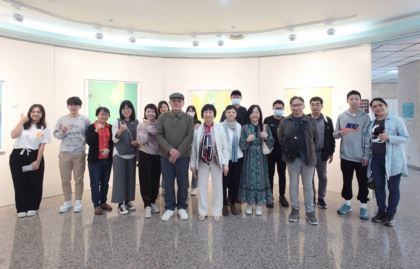 ↑圖說:高醫大通識教育中心邀請藝術家愛瑪蓮蒞校展出作品,開幕式觀展師生合影(圖片來源:高醫大提供)