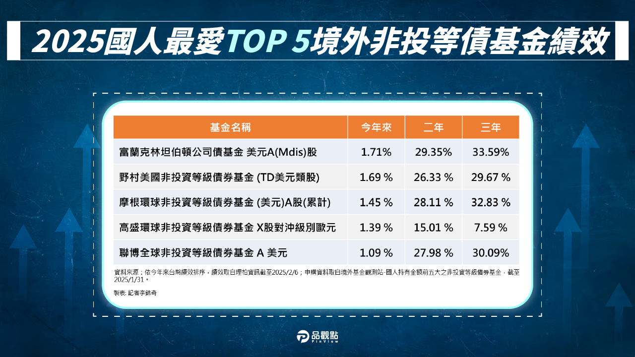 此外,非投資等級債也因為存續期較短,幾乎不受利率波動的影響。以此波美國聯準會降息來說,截至今年1月底,美國非投資等級債殖利率仍高達7.2%,不僅深具吸引力,也可做為市場意外波動時的下檔緩衝,因此也適合長期投資規劃。