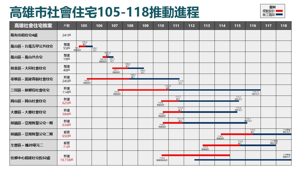↑圖說:高雄市社宅推動進程(圖片來源:高雄市都發局提供)