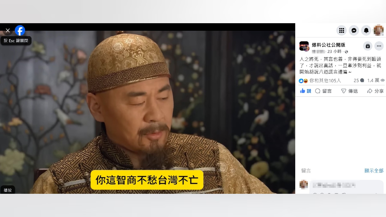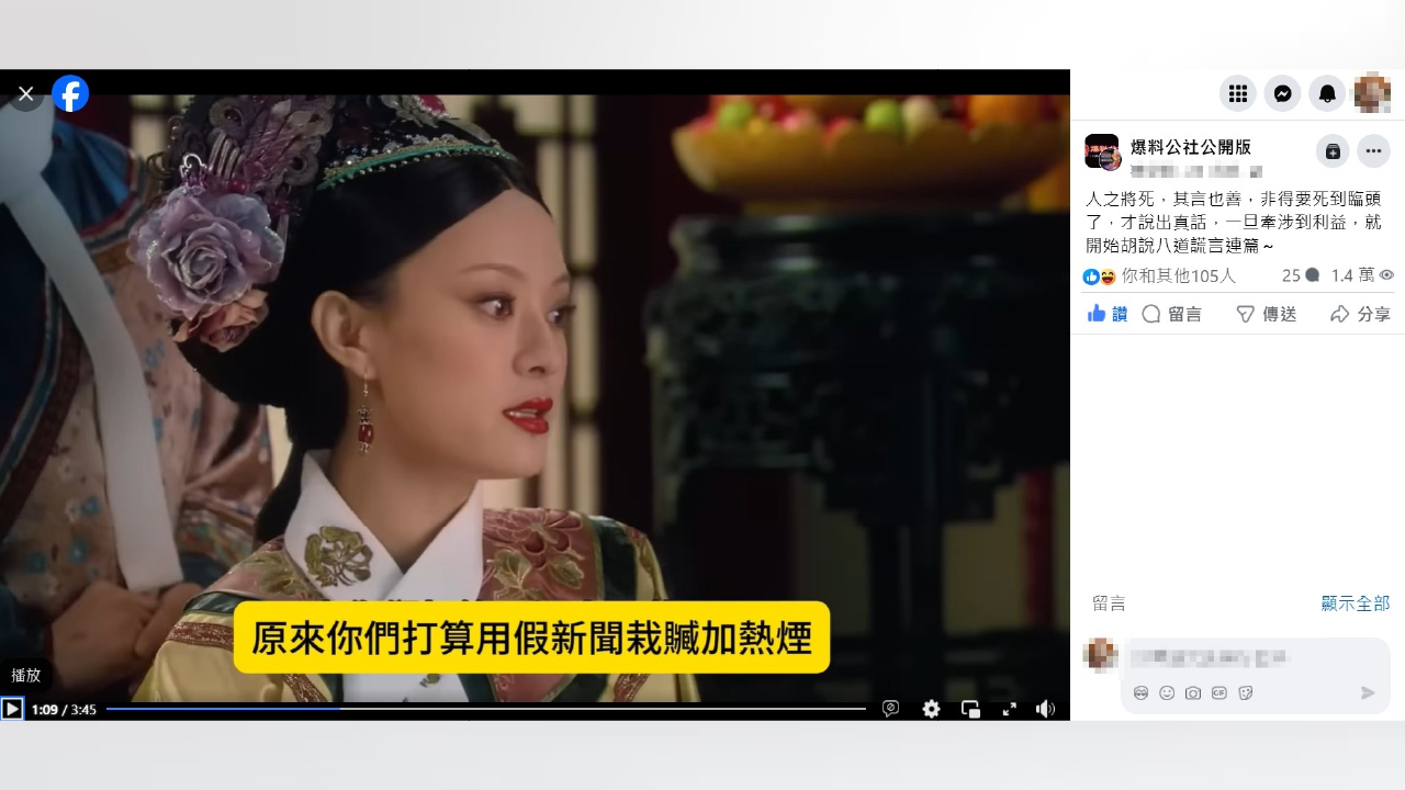 ↑圖說:後宮甄嬛傳的宮鬥劇情讓人印象深刻,網友擷取精華片段重製成嘲諷時事的影片,話題就是衞福部和國健署卡關審查超過兩年的加熱菸;嗆批主管機關阻擋加熱菸的理由實在愚蠢,利益團體潑髒水做假新聞,戒菸團體左手拿政府的宣導經費,右手卻和紙菸商暗通款曲,爆梗連連。(圖片來源:翻攝自爆料公社貼文)