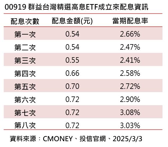 00919配息維持0.72元!年化配息率連8季破10% 想領息最晚這天買