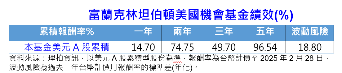 基金近2年績效約75%,在同類型基金中居冠,近5年績效96.5%。