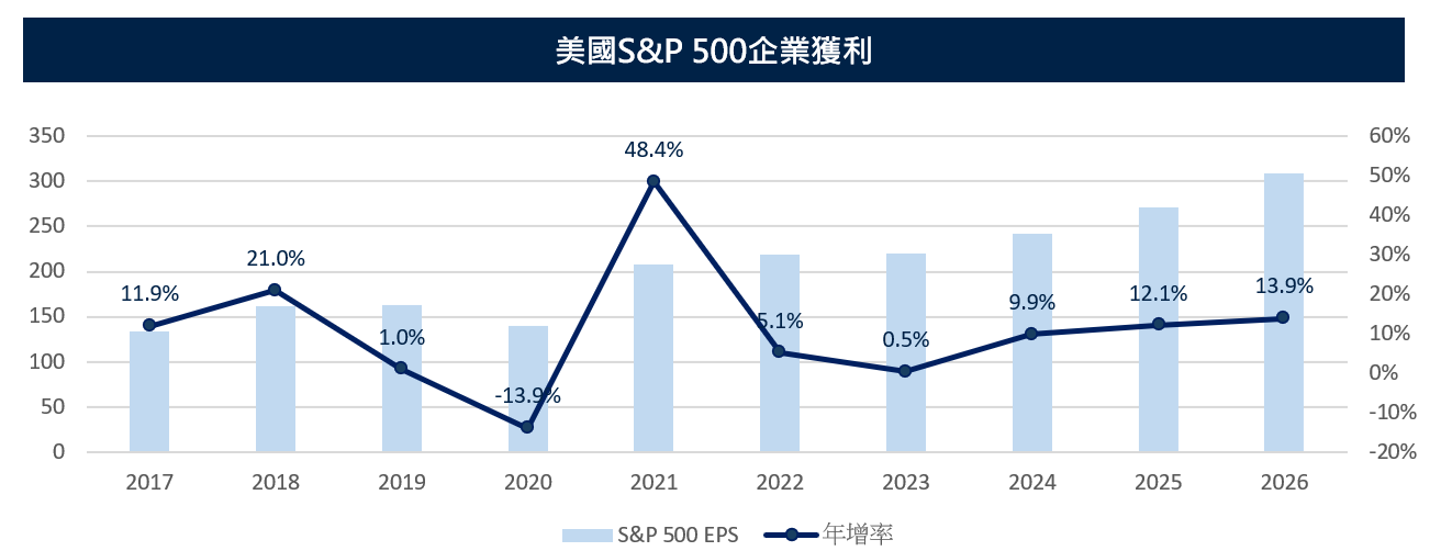彭子芸分析,從歷史事件與數據分析,支撐股價長期上漲動能仍在於基本面,根據FactSet預估今年S&P 500企業獲利上看逾12%的成長幅度,將成為美股中長期的有力支撐,其中,資訊科技類股更是主要成長力道來源,在企業獲利持續上升的趨勢之下,也將同步挹注美股上漲動能。