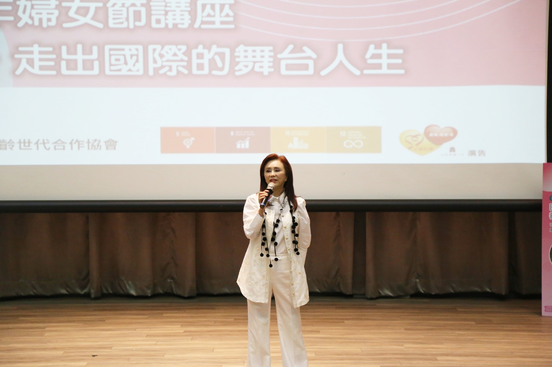 ↑圖說:孫翠鳳以「從傳統到創新—走出國際的舞台人生」為題,與嘉義市民分享她的戲劇人生與奮鬥歷程。(圖片來源:嘉義市社會處提供)