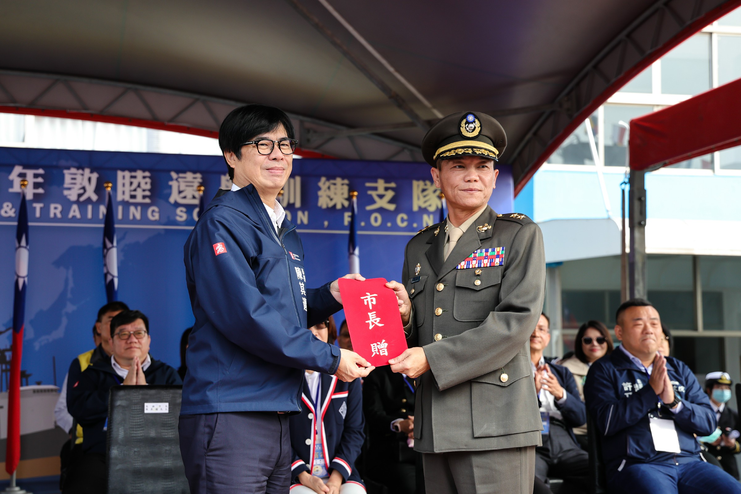 陳其邁感謝海軍在去年山陀兒及凱米颱風期間,投入救災工作,協助高雄迅速恢復市容,守護市民安全,展現海軍專業及愛民情懷,贏得各界一致肯定。他也強調,海軍肩負捍衛海疆安全與海上救難任務,無論海象多麼惡劣,皆與大海搏鬥守護家園,是臺灣安全最堅實的後盾,對此致上最高敬意。