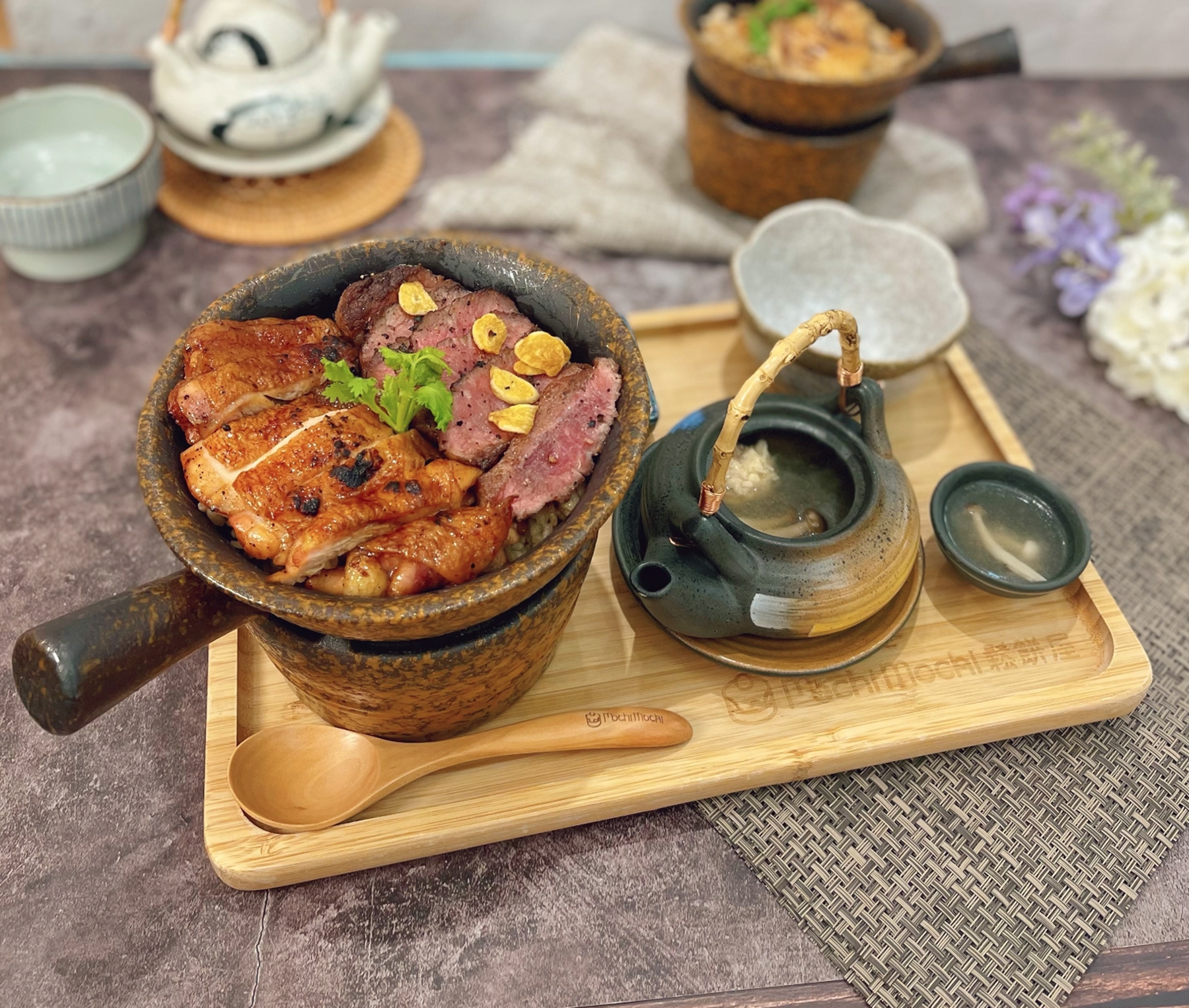 Mochi Mochi鬆餅屋最受歡迎的招牌甜點-「日式舒芙蕾」,擁有輕盈蓬鬆Q彈口感,搭配濃郁奶香,入口即化,超美擺盤令人療癒。口味選擇從經典原味到幸福草莓、北海道乳酪、京都抹茶,滿足甜點控的味蕾幻想!而Mochi Mochi鬆餅屋真正的隱藏王牌,則是職人匠心製作的日式釜飯,嚴選頂級花蓮富里米,以自家熬煮的秘製高湯替代水,慢火熬製讓米飯吸飽鮮甜風味;同時提供鹽烤鯖魚釜飯、炙燒干貝蝦雙拼釜飯、香煎牛小排釜飯等多樣選擇,也備有素食選項,讓每一口都是溫暖的感動,每一碗都充滿家的味道,多樣化的釜飯吃法讓用餐過程充滿驚喜和樂趣!