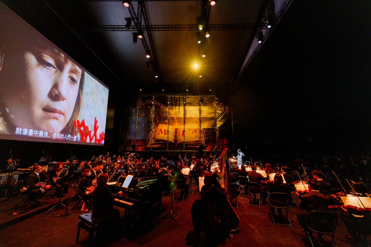 ↑圖說:透過現場交響樂演奏與電影影像的結合,讓觀眾沉浸於瑪蒂達的奇幻世界。(圖片來源:高雄市政府文化局 / 財團法人高雄市愛樂文化藝術基金會)