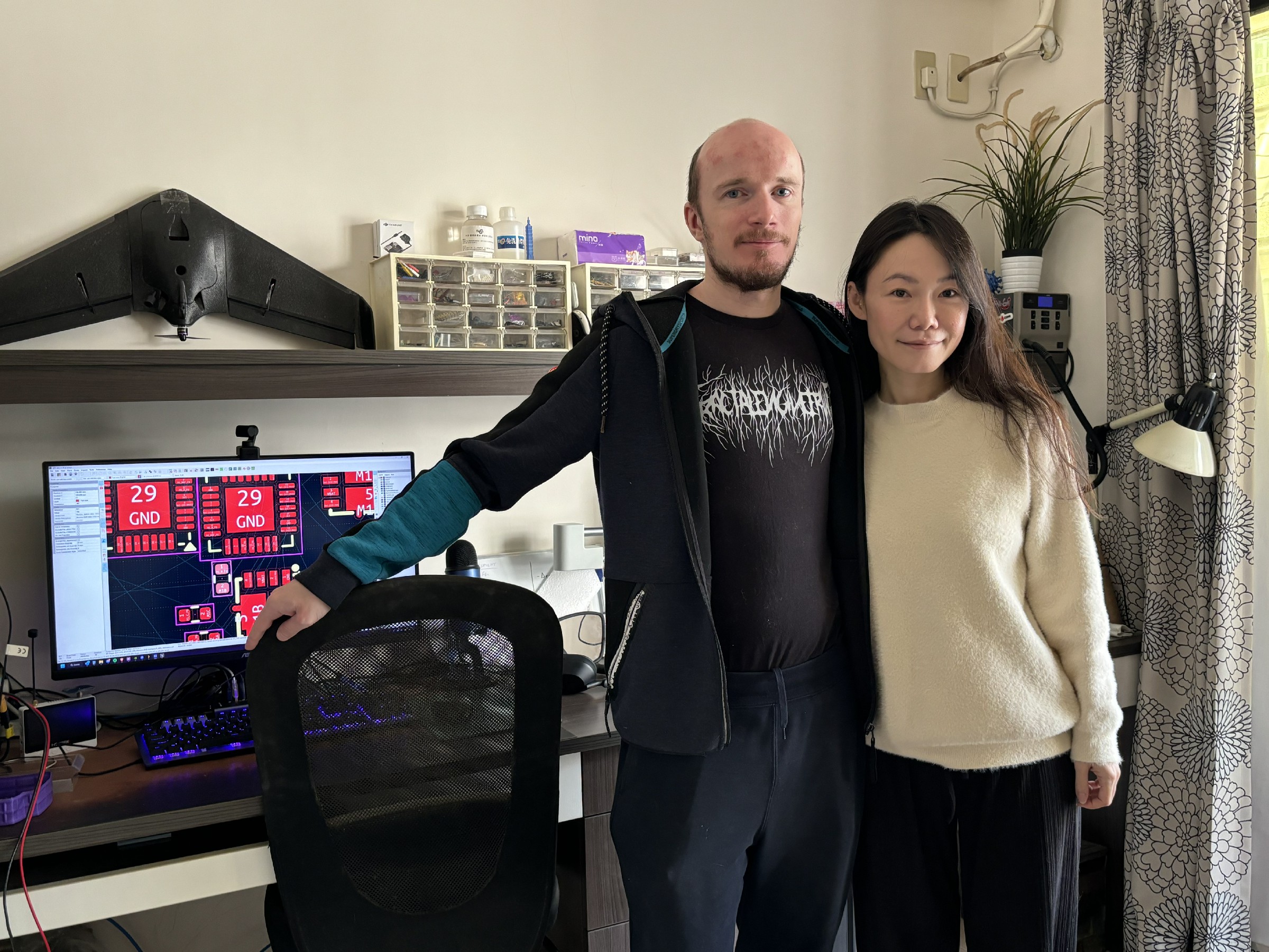 「弗萊克朵」由黃若嵐與法籍丈夫Yves共同創立。黃若嵐擁有企管與財務背景,負責行政管理,而身為機械工程師的Yves,則憑藉對競速無人機的熱愛與專業,專注於設計與開發。夫妻攜手,憑著對無人機的熱忱,從小型工作室一步步發展成具國際競爭力的企業。