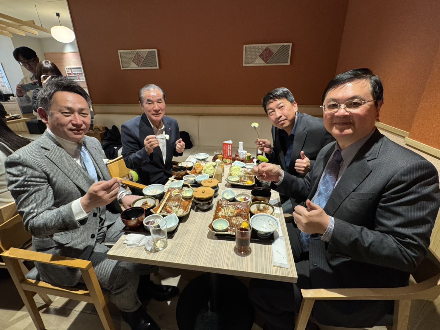 ↑圖說:由左至右丸榮商事 田中社長(丸榮商事為高雄蜜棗進口商)、早野商事 芝﨑社長(「かつ波奈」豬排餐廳為早野商事旗下事業體)、高市府梁銘憲代理局長、高市府羅達生副市長(圖片來源:高雄市農業局提供)