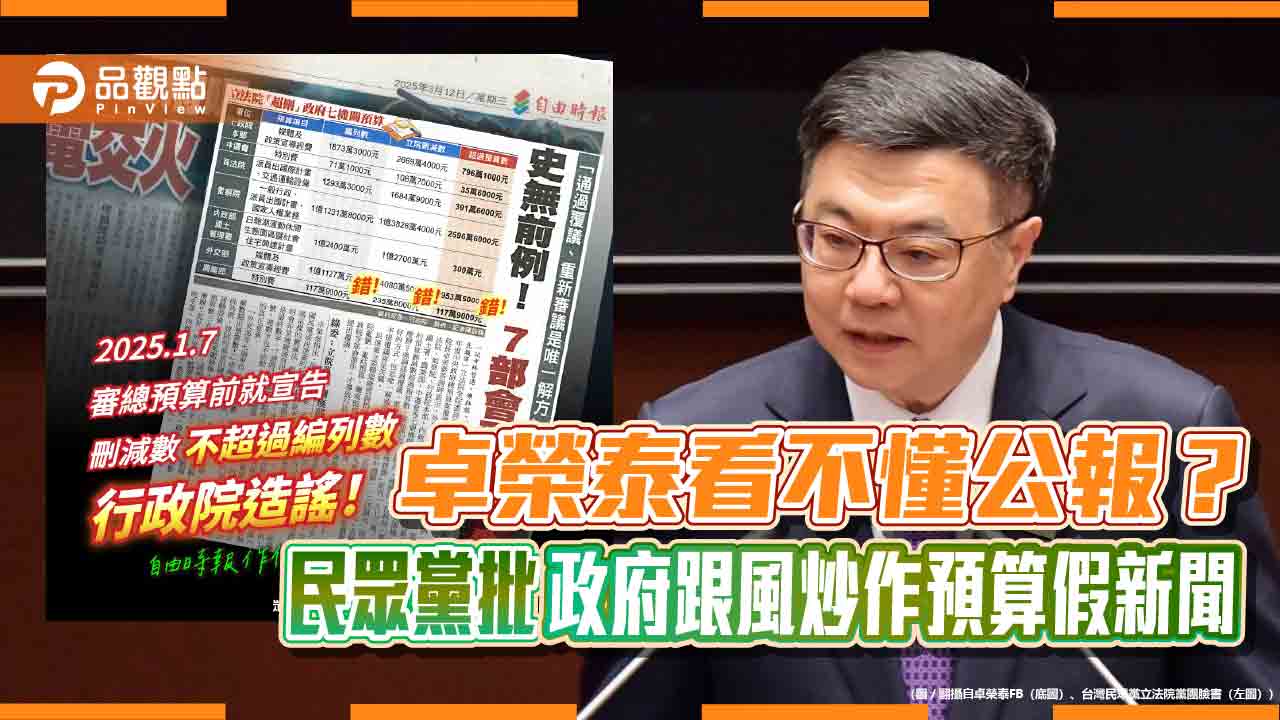 黨團更質疑,行政院長卓榮泰是否有能力正確理解立法院的預算審查程序,還是僅憑錯誤資訊就附和媒體造謠,若行政院長帶頭散布錯誤訊息,應當對社會大眾負起責任,而非隨波逐流,成為輿論戰的推手。