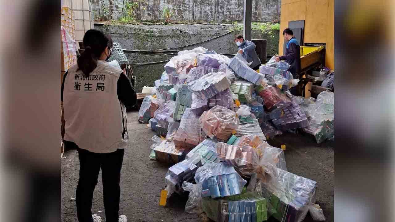 ↑圖說:從走私數量來看,一年幾十萬條走私加熱菸的數量,凸顯出台灣對加熱菸的剛性需求。圖為今年1月新北市衛生局銷毀6萬多條加熱菸畫面。(圖片來源:新北衞生局提供)
