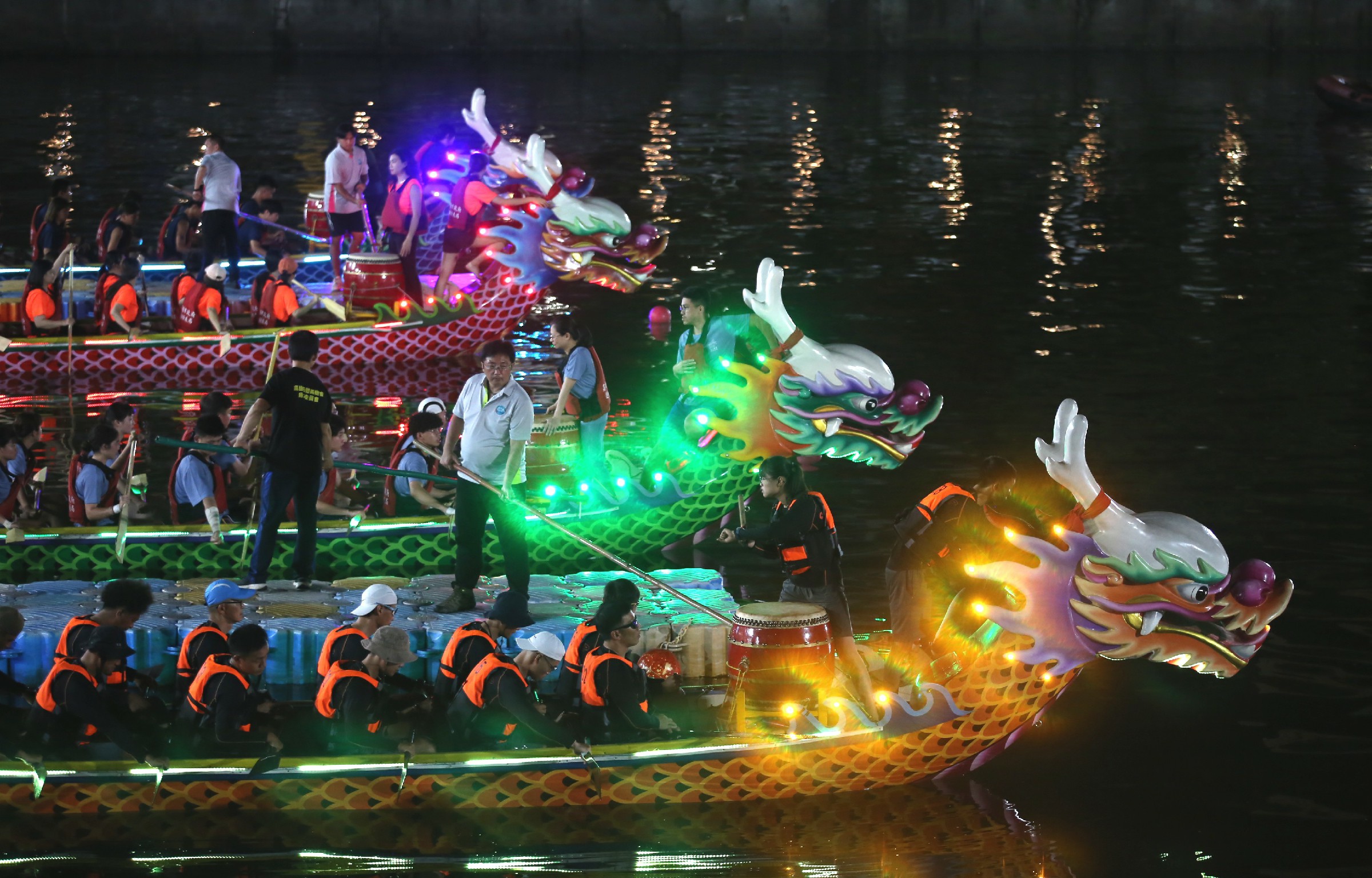 ↑圖說:燦爛奪目的夜間龍舟(圖片來源:高雄市運發局提供)