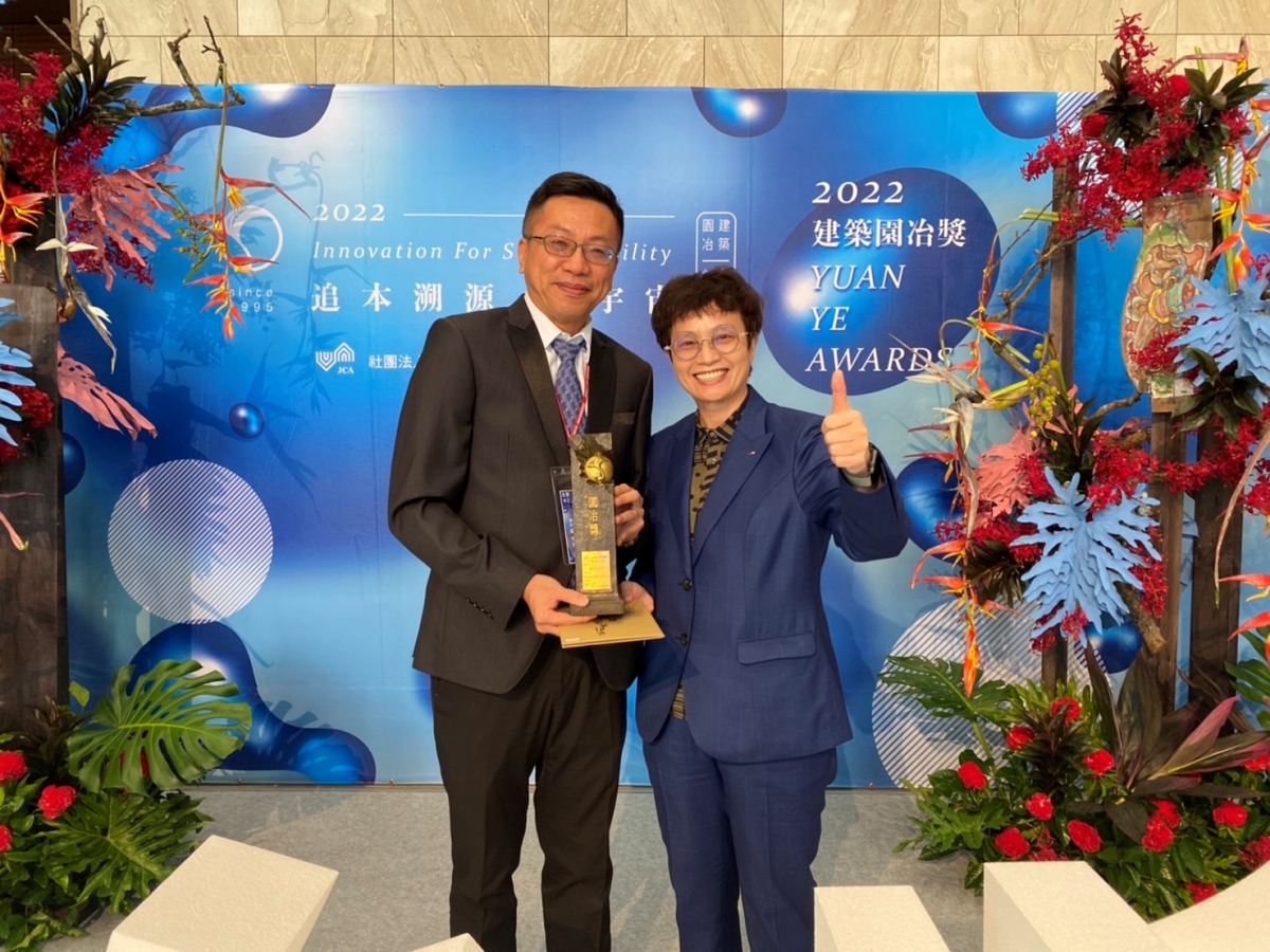↑圖說:晉基建設「森 mori」獲得大樓建築景觀類–建築園冶獎,總經理陳仁昌(左)與台南市副市長趙卿惠(右)合影。(圖片來源:晉基建設提供)