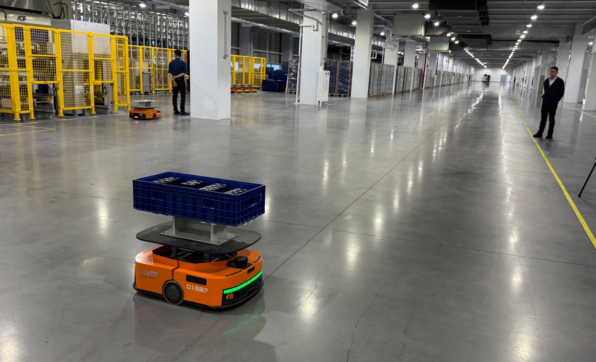 走進台塑新智能廠房,第一印象就是環境明亮乾淨,走道空間設計寬闊,無人搬運車(如下圖,記者李錦奇攝影)就在廠區內軌道間移動,幾乎安靜無聲地默默工作,整座廠房顯得寂靜,宛如無人工廠,完全沒有傳統工廠的吵雜聲。