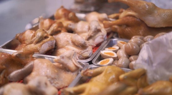 在選材方面,曹記鹽水雞堅持使用新鮮溫體雞,確保肉質鮮嫩,每口都充滿自然香氣。與其他使用冷凍雞肉的鹽水雞不同,曹記的產品肉質更細緻,口感更佳,完美呈現雞肉的原始風味。每隻雞都經過仔細處理,採用簡單純粹的調味方式,讓顧客品嚐到最自然的美味。