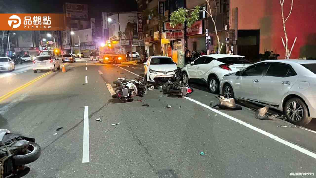 警方初步調查顯示,林男酒後駕車行經該路段時,因酒精影響判斷力和反應能力,導致車輛失控釀成事故。多輛機車倒臥路邊,汽車車身也有明顯的碰撞痕跡。