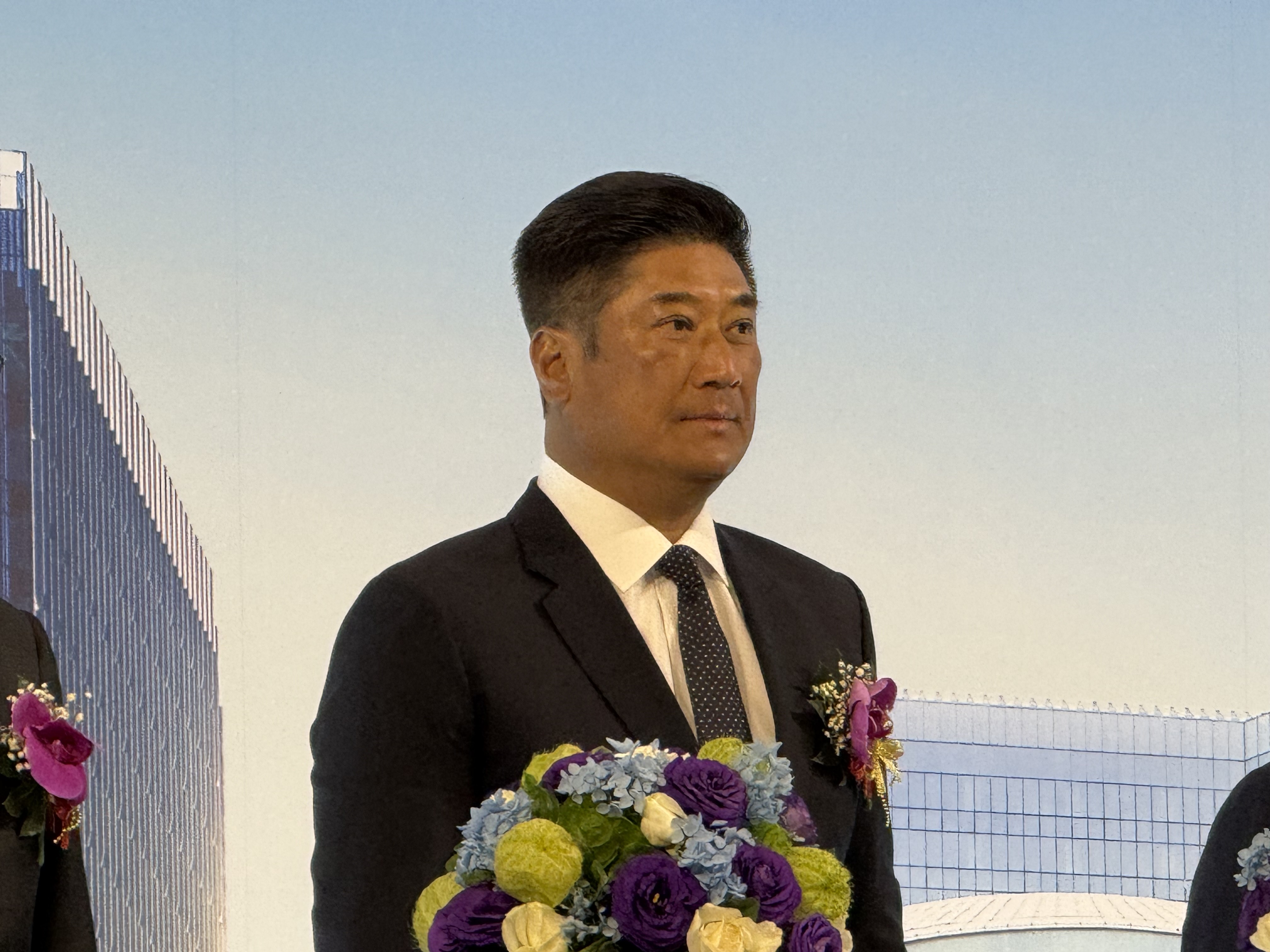 中信慈善基金會董事長辜仲諒(如上圖,記者李錦奇攝影),今天特別到場觀禮剪綵,表達祝賀,不過他並未公開致詞發言。另外,中信金董事長顏文隆、中信銀董事長陳佳文、中信金總經理高麗雪,也都出席觀禮;台灣人壽董事長許舒博(如下圖右五,記者李錦奇攝影)致詞時表示,此案自2019年動土,原本預計2022年底完工,因遇到疫情、缺工缺料等情況,工期延長900天,工程款也由原本預估的200億元增加至400多億元。
