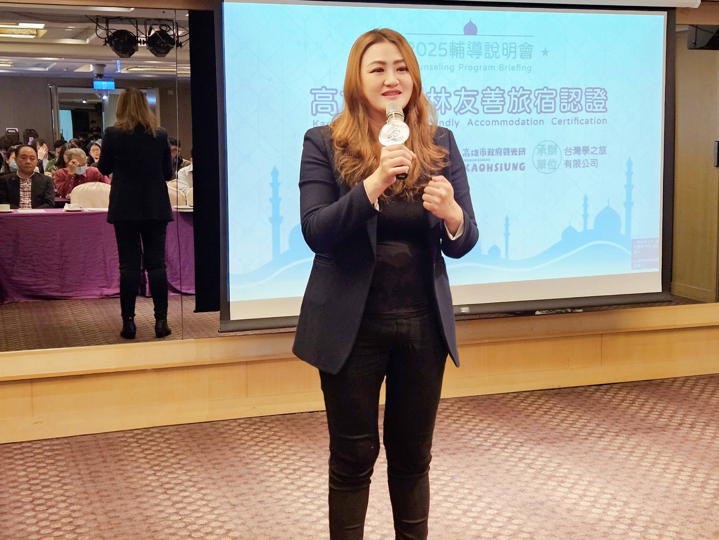 ↑圖說:高閔琳局長向參加業者說明對穆斯林輔導的努力(圖片來源:高雄市觀光局提供)