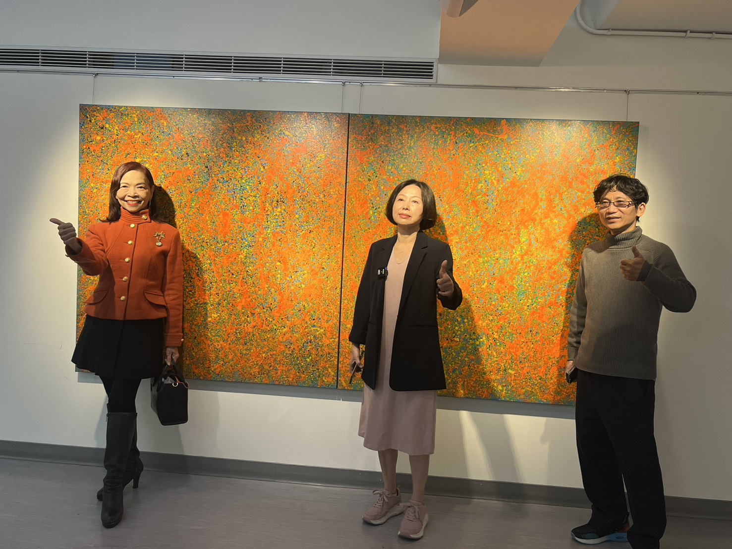 圖說:左起子題展策展人之一雷紫玲。高雄市現代畫學會理事長王富娘,子題展策展人之一蔡仁德、(圖片來源:呂宗正拍攝)