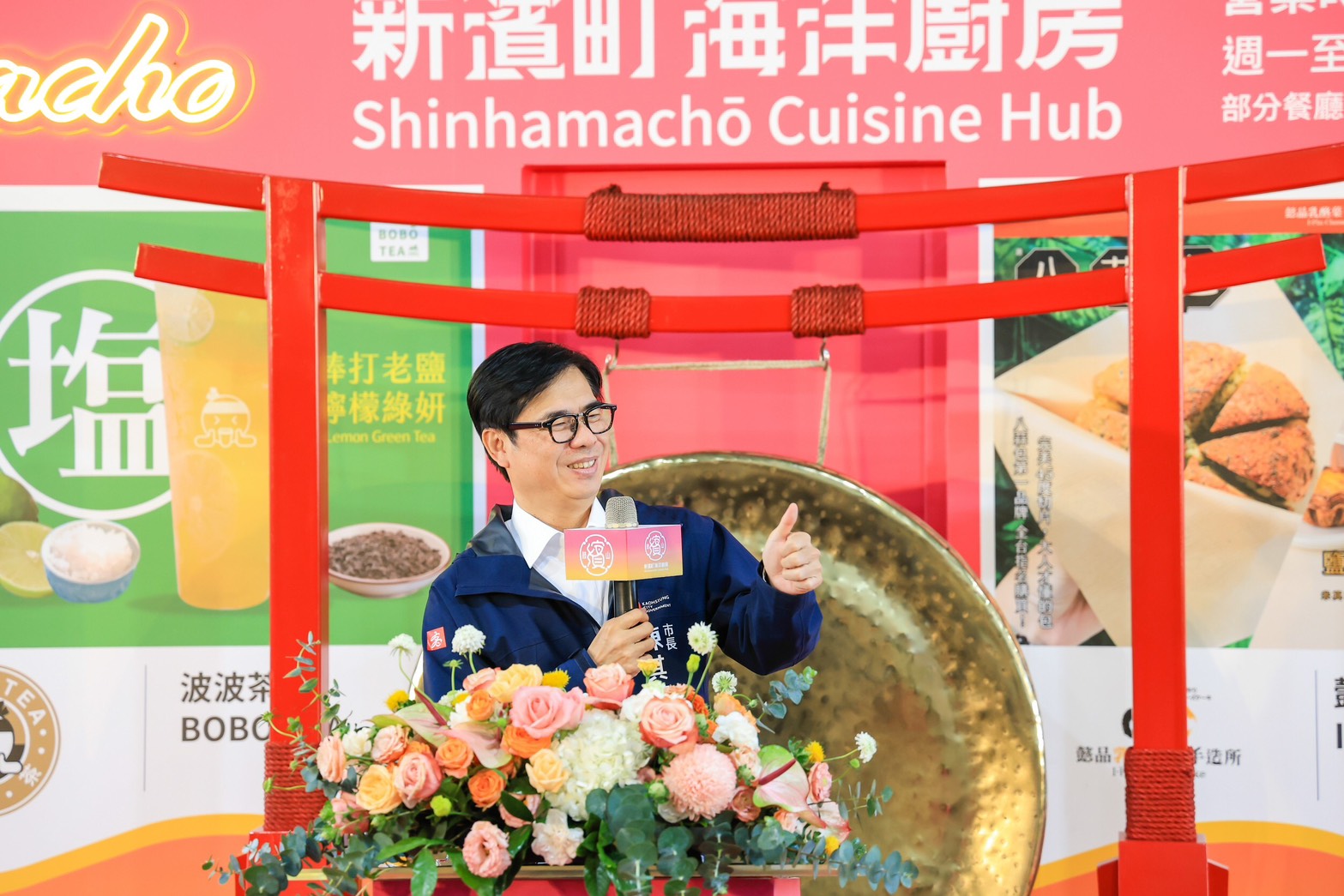 圖說:陳其邁感謝國揚集團帶領旗下漢來物業進駐經營,打造全新新濱町海洋廚房。(圖片來源:高雄市政府提供)