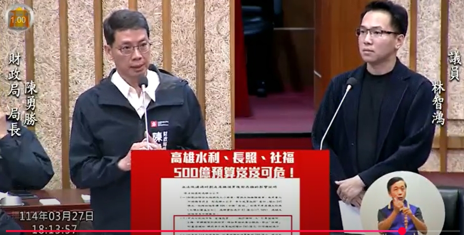面對惡修預算對高雄施政的重大衝擊,林智鴻當場請市府官員說明影響層面。財政局長陳勇勝指出,中央政府遭刪減3753億元預算,導致高雄市軌道、水利、工務及社福等建設的500億元補助款面臨不確定性,市府的長期建設計劃恐難以為繼。工務局長楊欽富則表示,全市道路修繕與人行環境建設將因此受到5億元不等的影響,地方陳情建議的道路刨鋪作業恐將中止。社會局長蔡宛芬更強調,藍白惡修總預算讓高雄市長照社福預算陷入百億元不確定性,對弱勢群體極為不公。