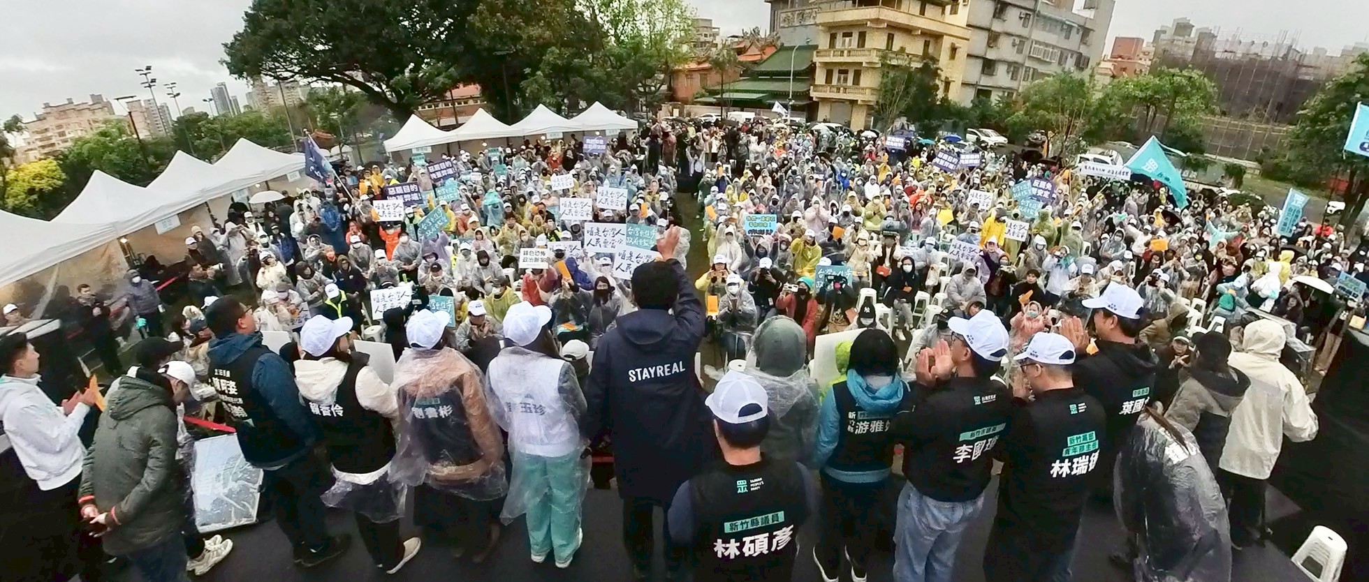 民眾黨「人民要當家」全台巡迴宣講活動今(30)日在柯文哲的家鄉新竹天公壇舉行第二場,儘管天氣寒冷又下雨,仍有大批支持者冒雨到場,展現守護民主價值的決心。台灣民眾黨主席黃國昌、立委陳昭姿、黃珊珊、政策會執行長賴香伶、新竹市長高虹安及新竹代理市長邱臣遠皆到場宣講,國民黨立委謝龍介、鄭正鈐和多位新竹在地議員也到場聲援。