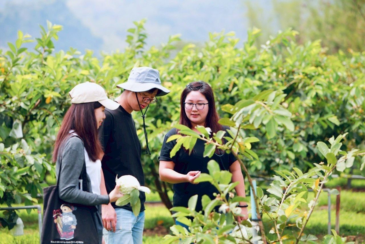 ↑圖說:第一天來到六龜翠綠蓊鬱的果園,在農友的導覽下揭開芭樂生態的奧秘。(圖片來源:高雄市農業局提供)