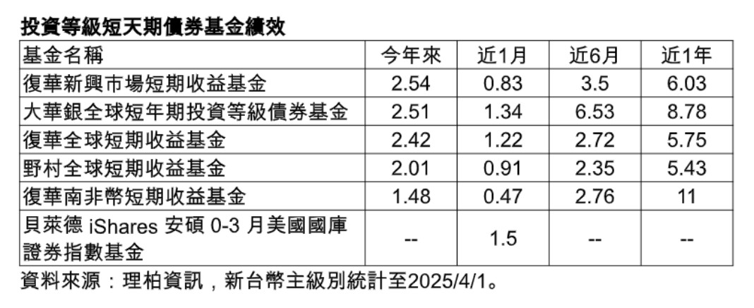 復華全球短期收益基金經理人黃媛君表示,美國總統川普多變的政策已逐漸影響企業信心而延後投資,加以近期公布的消費信心數據下滑,使金融市場波動性上升,由於短天期債券的波動性低於長天期債券,有鑑於目前殖利率在長期相對高位,預期聯準會貨幣政策方向仍是降息,短天期債券是收息且變數較少的投資好選擇。