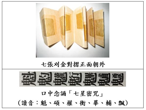 準備 7 張刈金(對摺、金箔朝外)放門口地上。