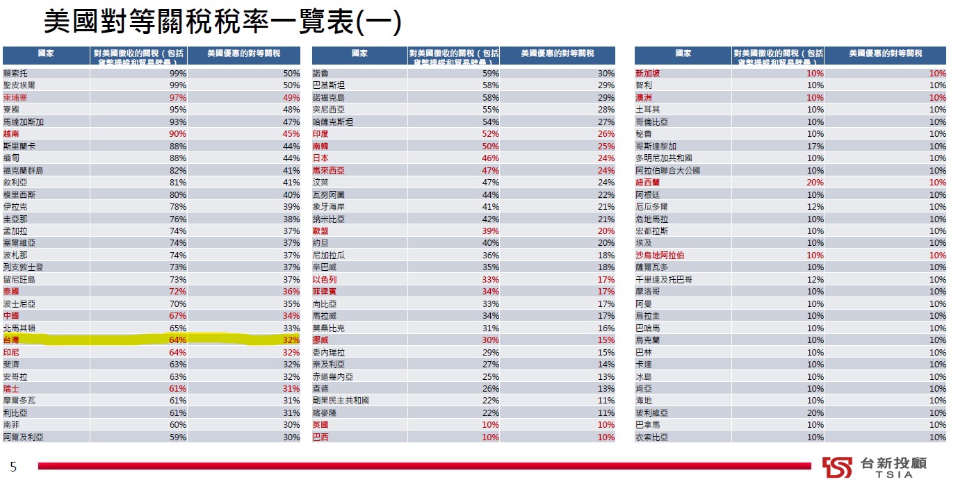 川普課台32%關稅!台新投顧懶人表秒懂 法人這樣看後市