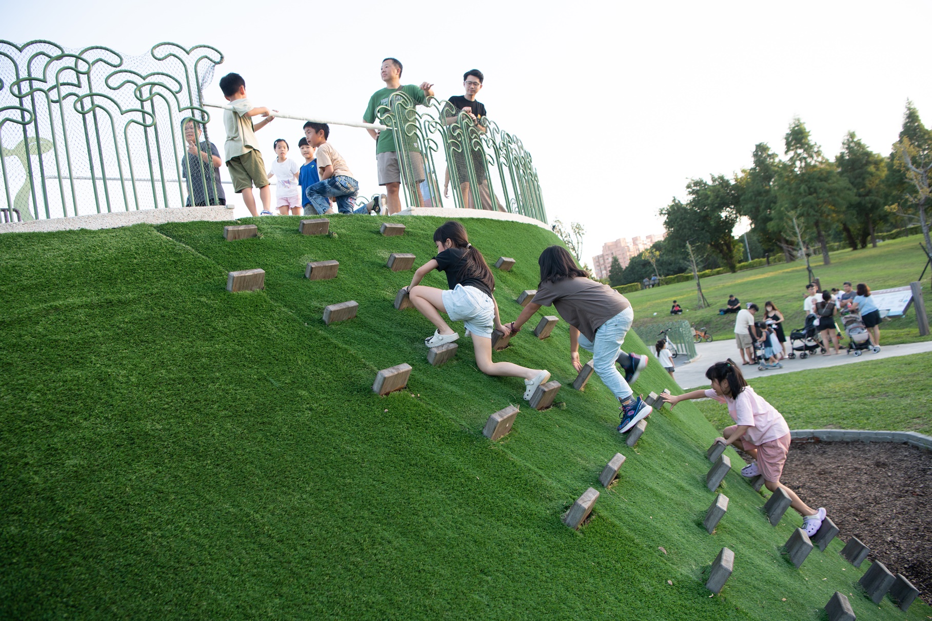 ↑圖說:綠豆仁遊戲場具挑戰性的遊具 適合多年齡段的小朋友遊玩。(圖片來源:嘉義市觀光新聞處提供)