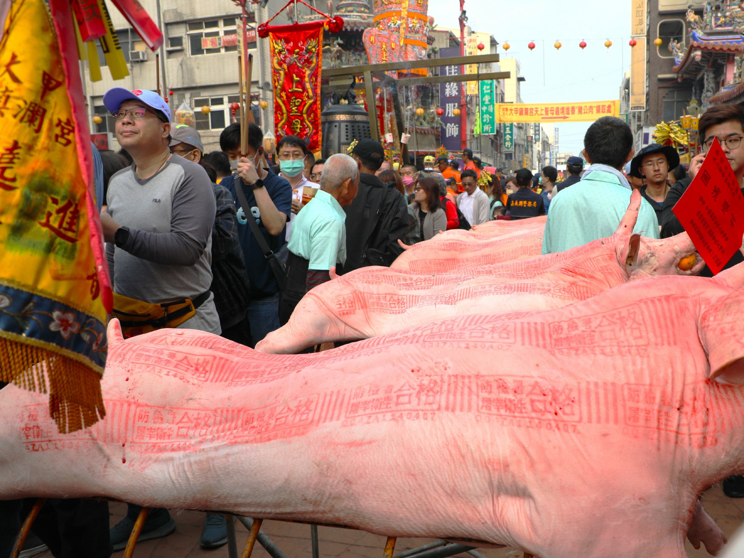 儀式結束後,現場隨即進行「呷豬公肉保平安」的傳統習俗,祭祀用的豬公經由志工分切後分送給信眾,象徵共享福澤。宰豬場面壯觀熱鬧,為整場大典增添了庶民文化的親切溫度。